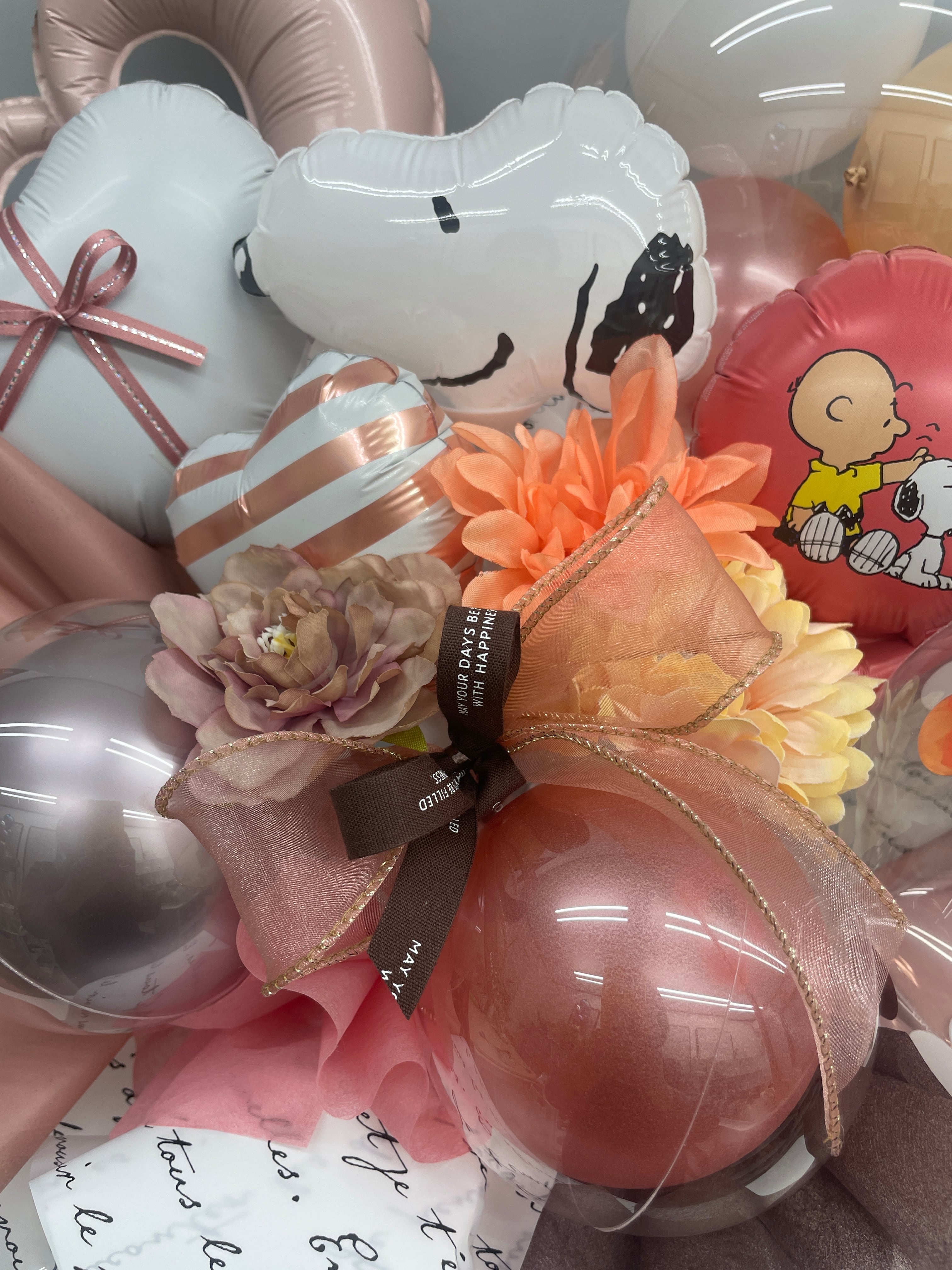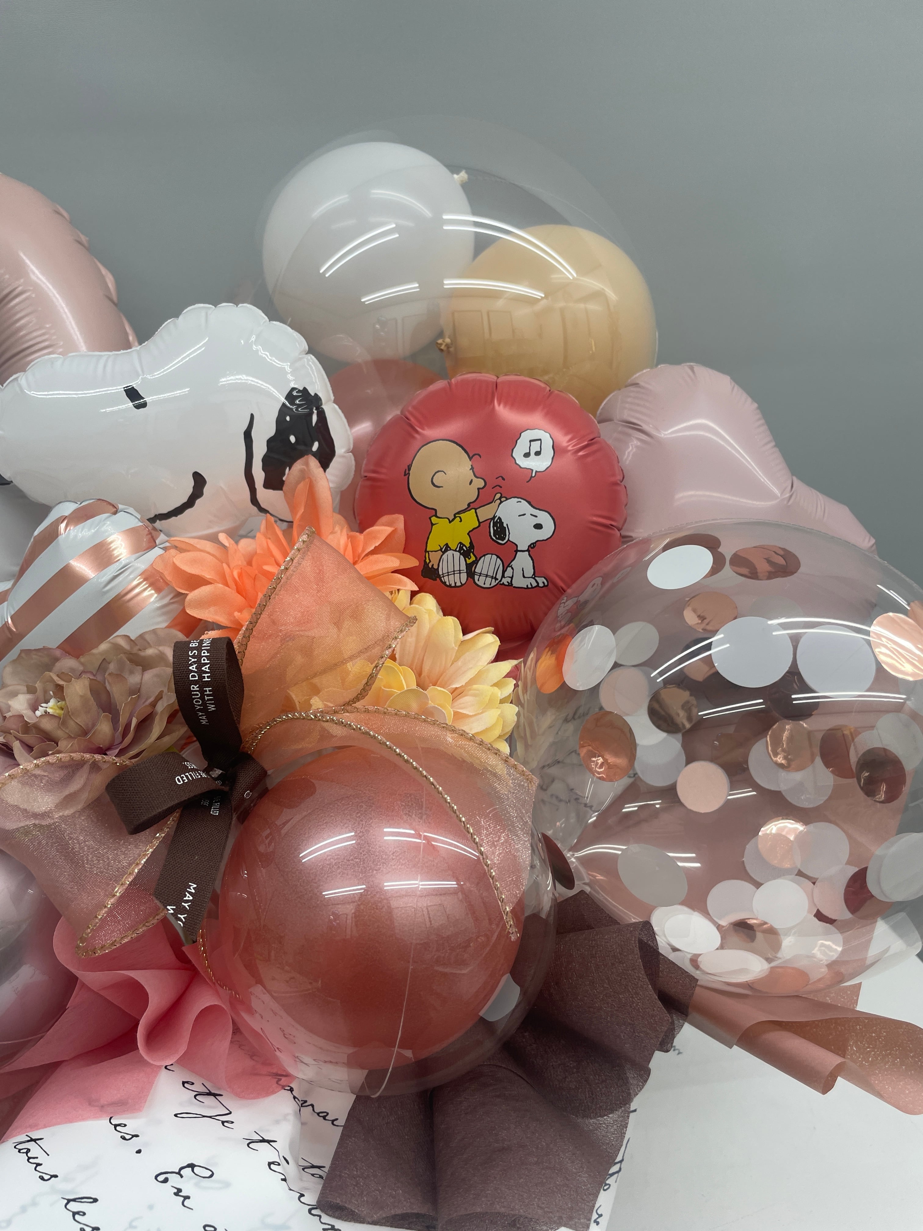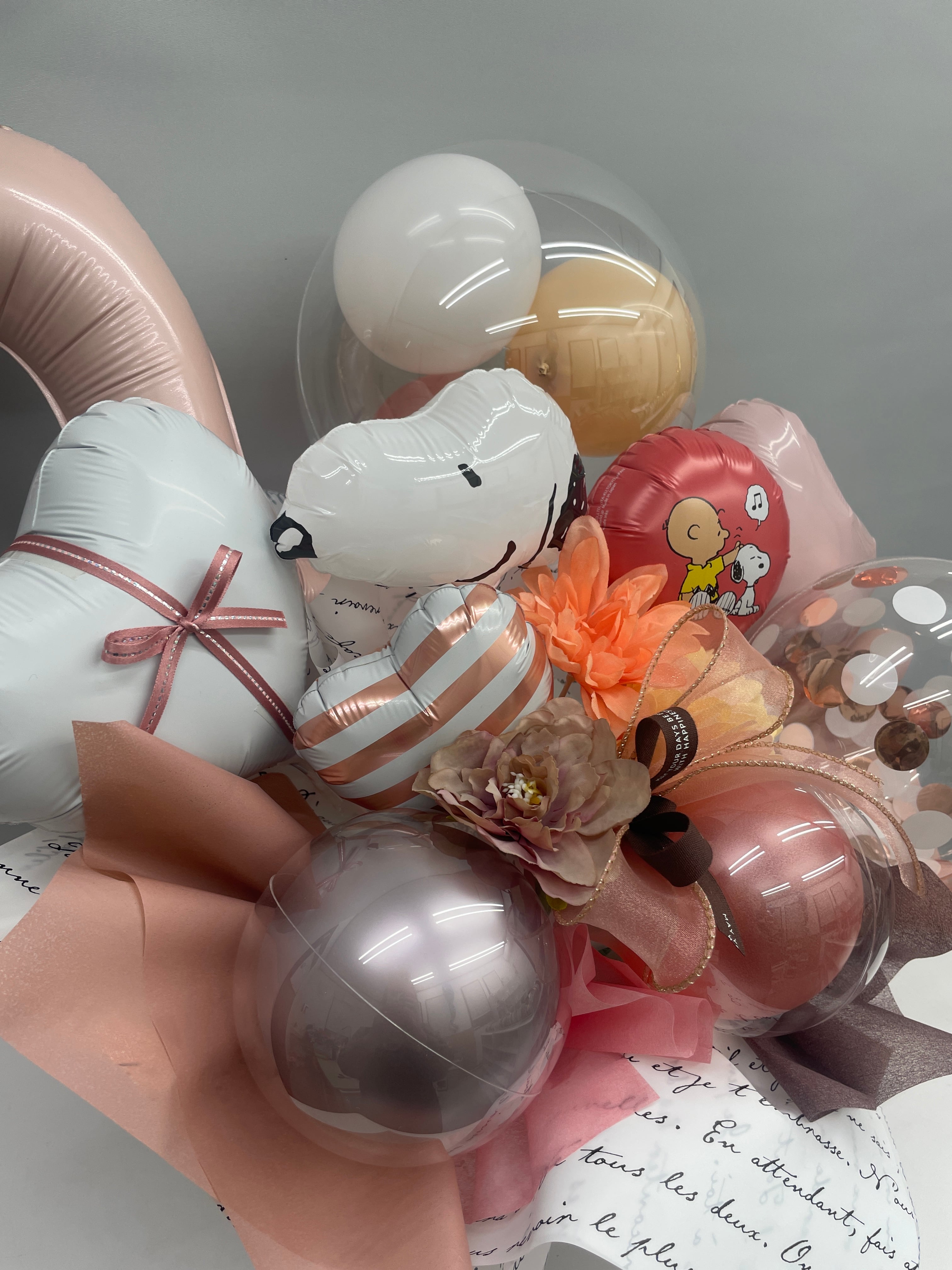 くすみピンク スヌーピーSNOOPYバルーンアレンジ お誕生日お祝い記念日