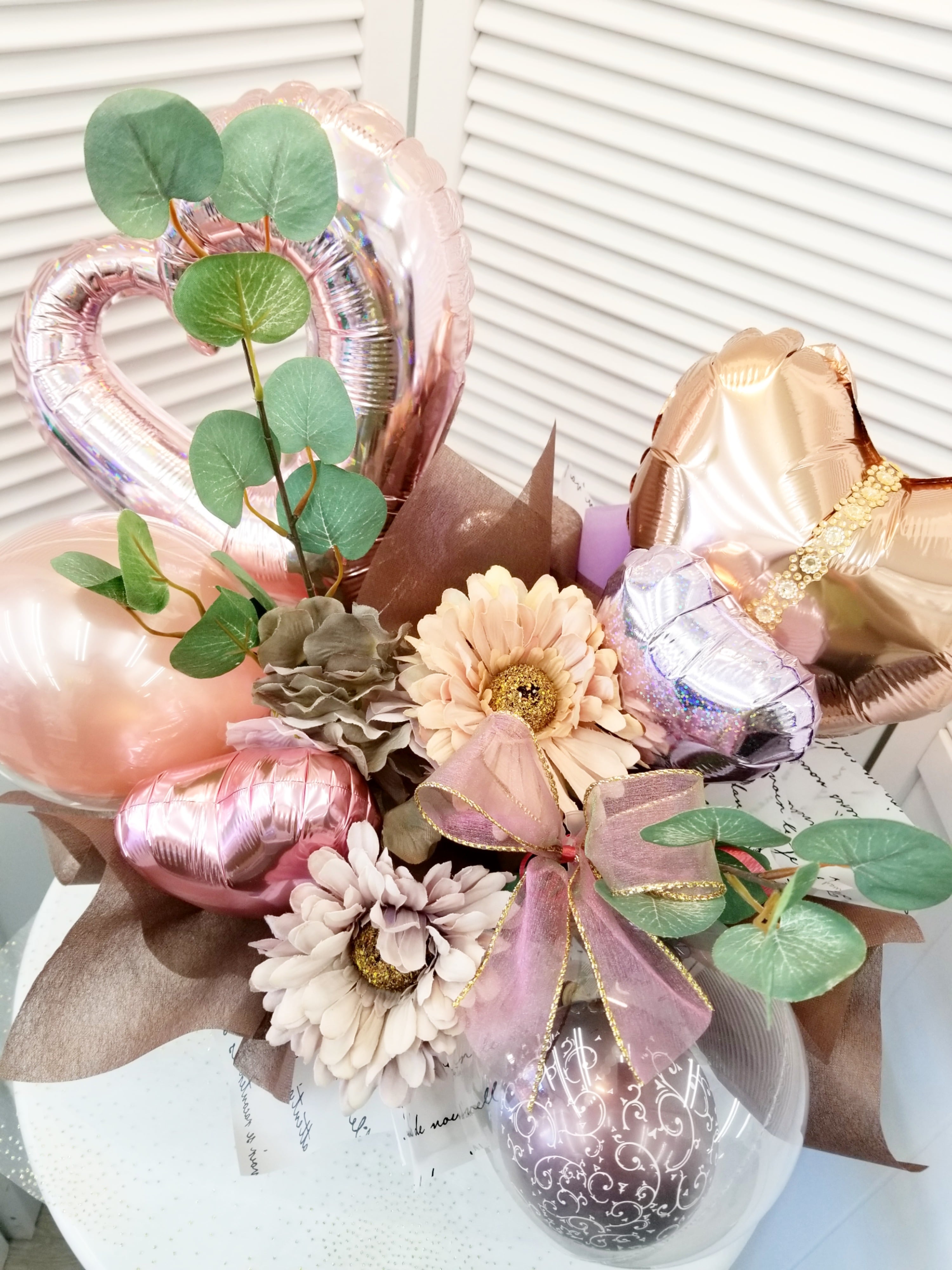 くすみ系ピンクのバルーンアレンジ / 開店祝い バースデー 出産祝い