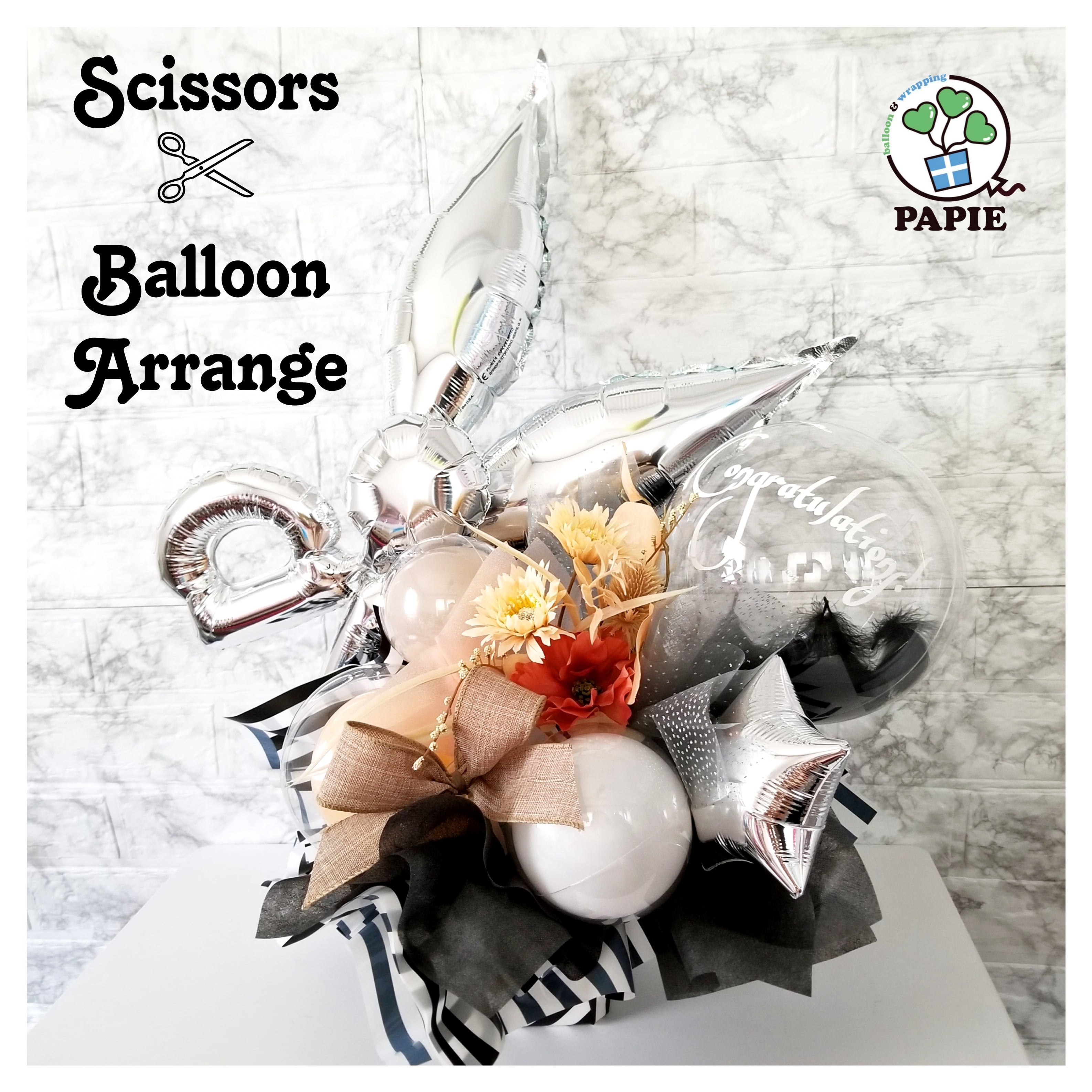 ハサミ✄バルーンのアレンジ 美容院のお祝いにオススメ! お祝い 開店祝い 周年お祝い