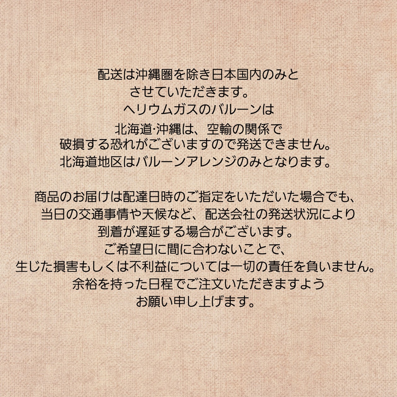 商品のお届けは配達日時のご指定をいただいた場合でも、当日の交通事情や天候など、配送会社の発送状況により到着が遅延する場合がございます。